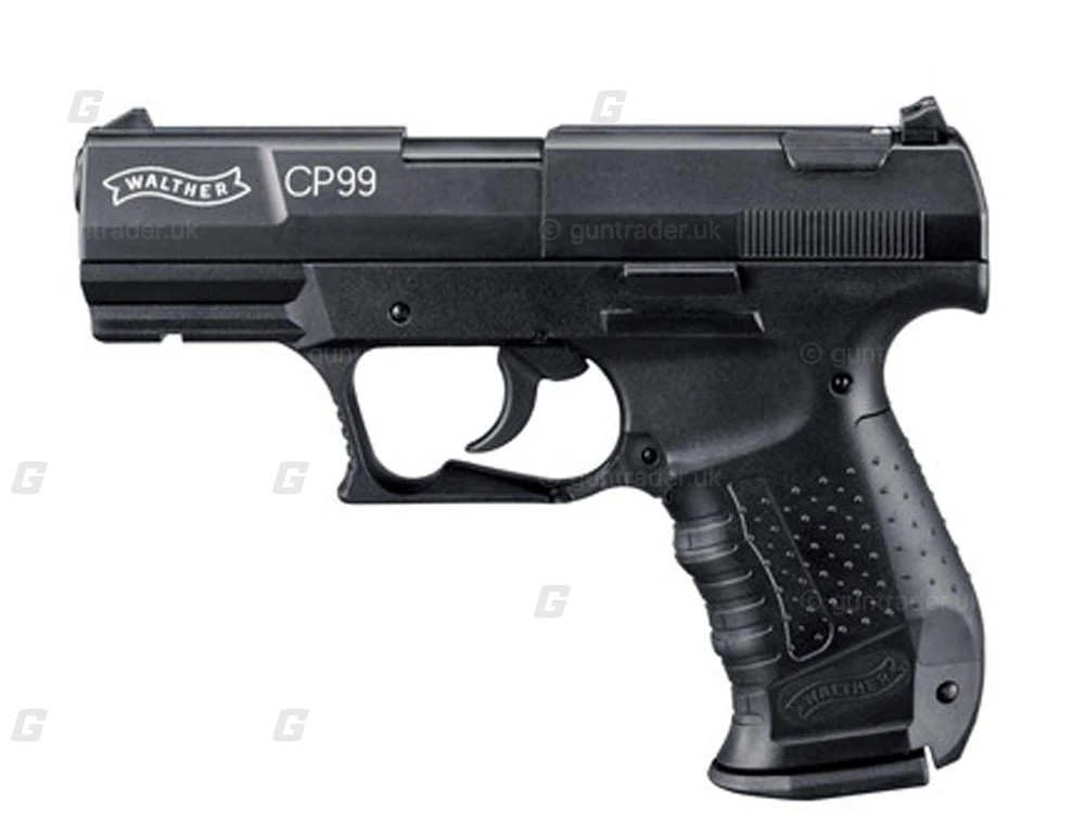 The Walther CP99 is simply authentic. The many variants are used by police units throughout the world and prized by sport shooters and collectors. This CO₂ version looks just like the original and shares its technical features: a decocking lever, ambidextrous magazine release and interchangeable backstrap. Innovative details, including a fast-action system for quick loading and quick-change cartridges, make the CO₂ version an ideal replica. It has all the feel of the original. With 8-rds rotary magazine.