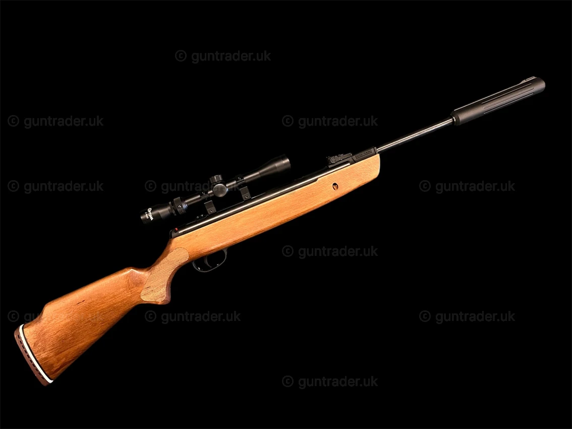 Hatsan Arms 900 Wooden stock break barrel, full powered air rifle fitted with 3-9×32 scope.