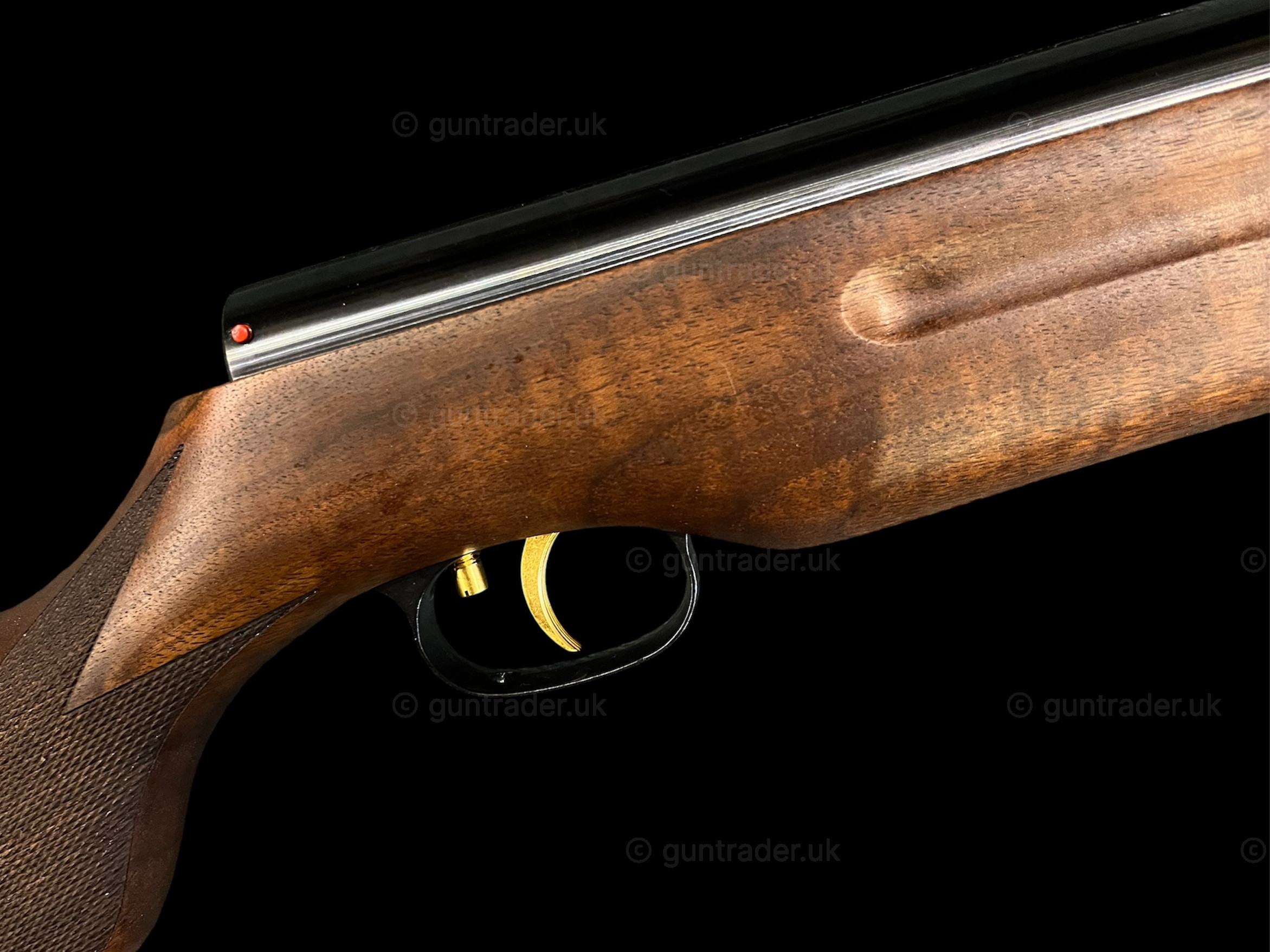 Celebrating 75 years of the HW35, this exclusive model (600 units are being made / 200 units available to the UK only) incorporates design features which give a fond nod to the original 1950’s rifle. The stock is an attractive oiled walnut with a rounded checkered pistol grip and finger groove in the forearm. The rifles comes with open sights and mounted sling swivels to hold a wide leather rifle strap featuring a 75 edition design. Jubilee laser engraving can be found on the receiver – the rifle also houses a gold-plated trigger – just like the original model.