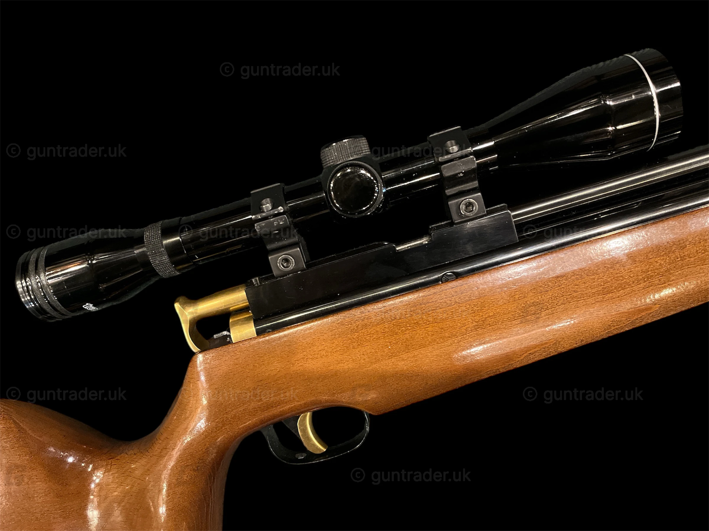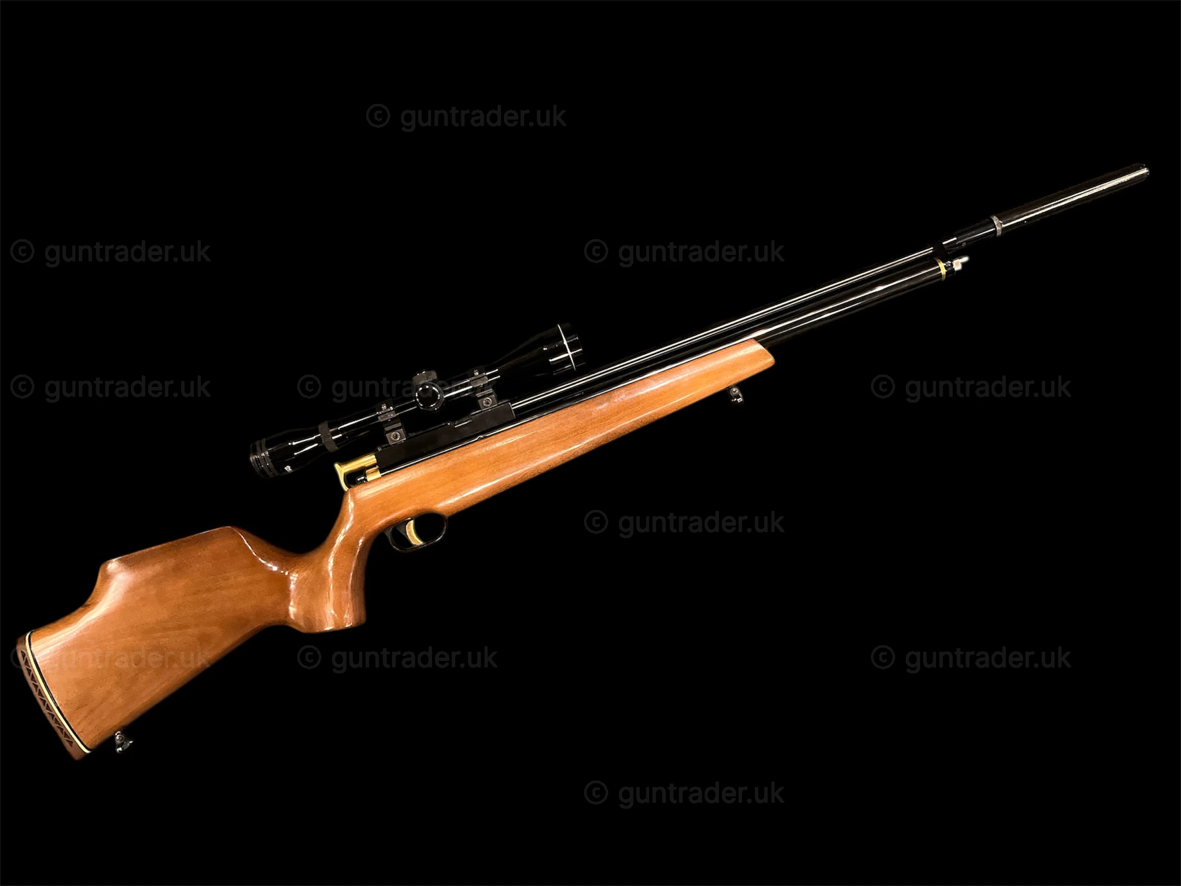 Daystate LR90 with beech stock, fitted with Tasco Silver Antler 4×40 scope and sound moderator.