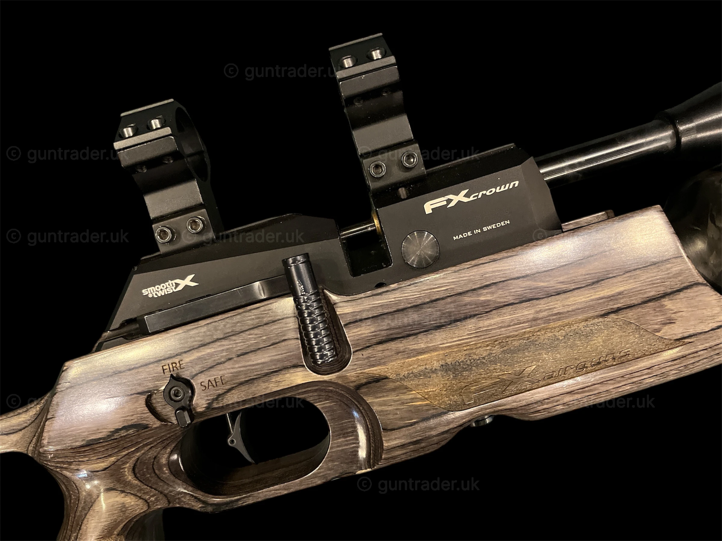 FAC rated (30ft/lbs) FX Crown with Thumbhole Grey Laminted stock fitted with 30mm high mounts.