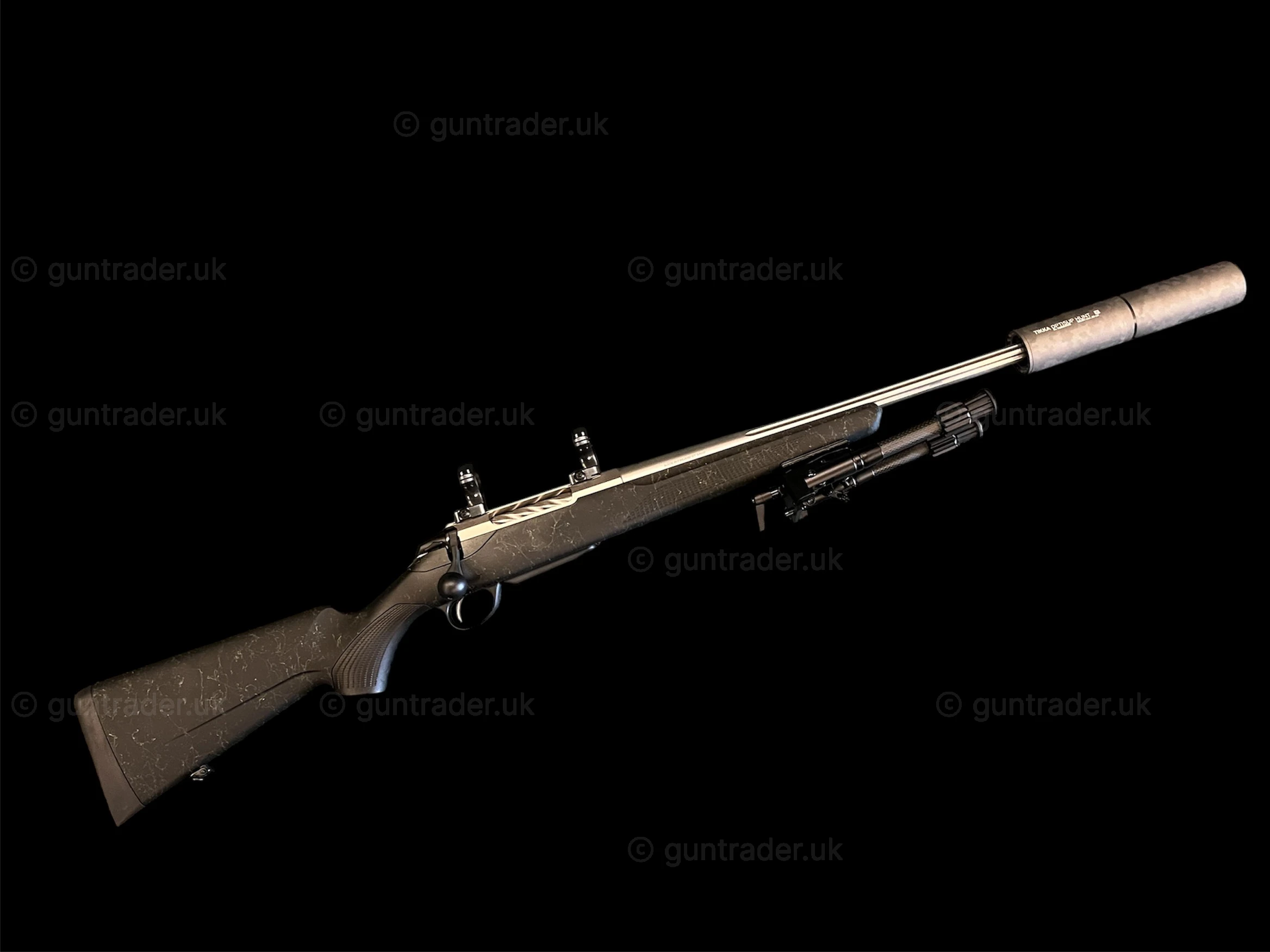 Tikka T3x Roughtech Emerald with fluted stainless barrel Screwcut 5/8×24 With: Optilock Tikka rings and bases Blued Tikka Optisup Sound Moderator GMK Carbon Bipod 7-10 Inch Tikka Camo Rifle slip Niggeloh Tikka Sling Stable sticks