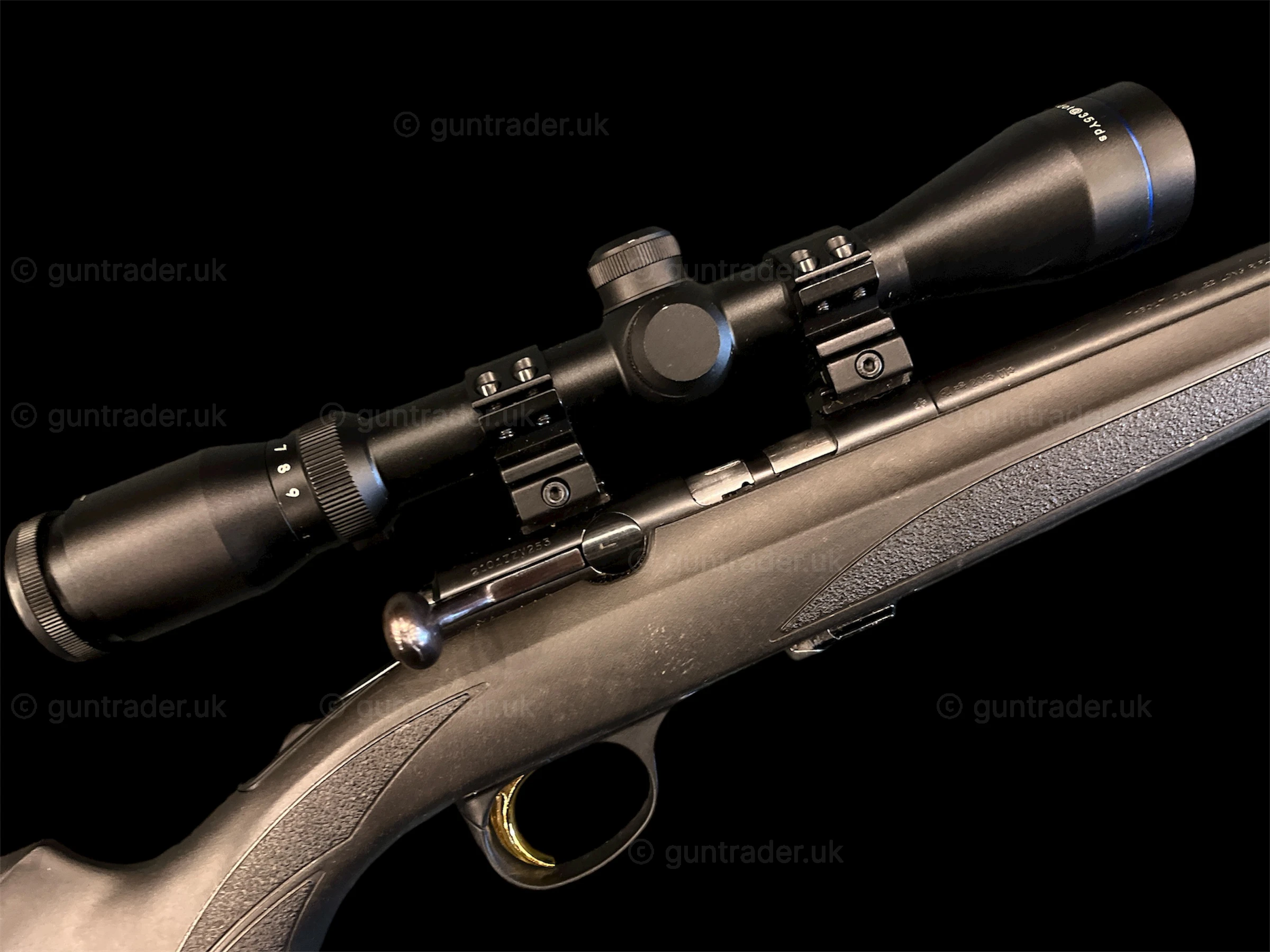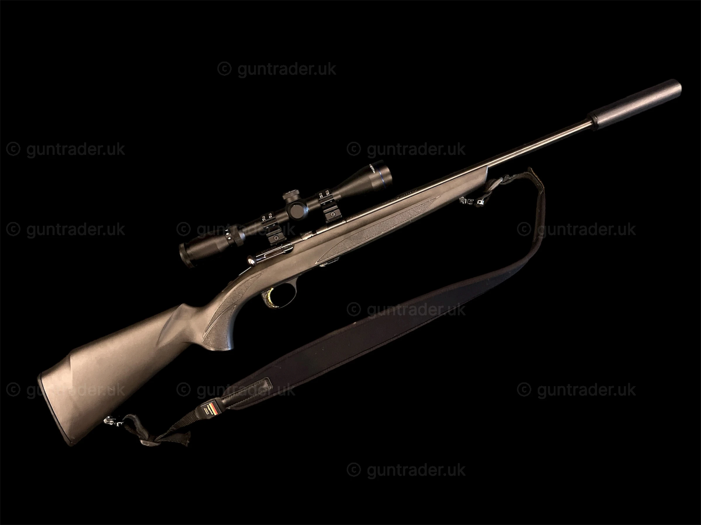 Browning T Bolt, synthetic stock, straight pull rifle, fitted with AGS 3-9×40 scope and sound moderator. With 2 x 10 shot magazines.