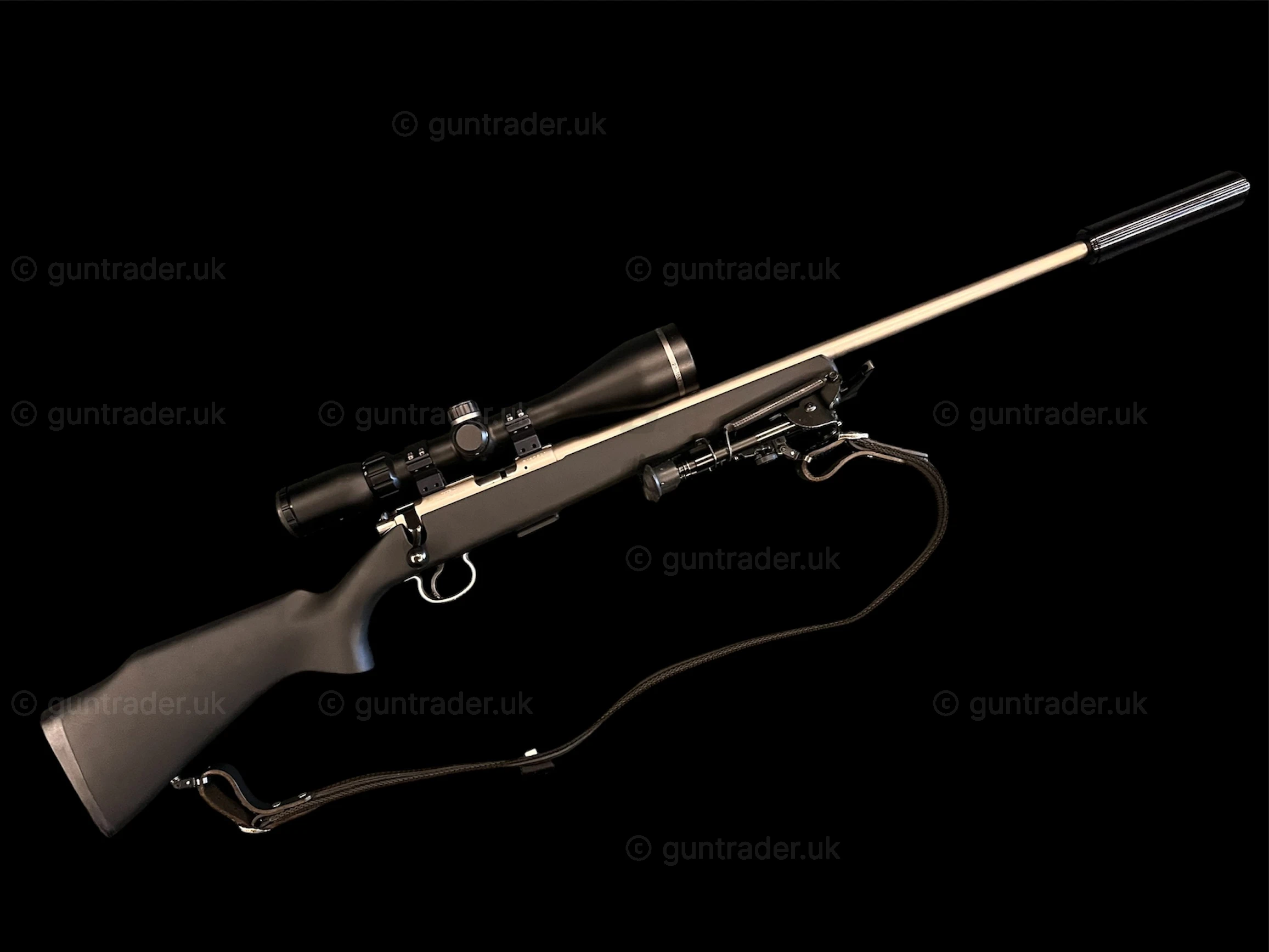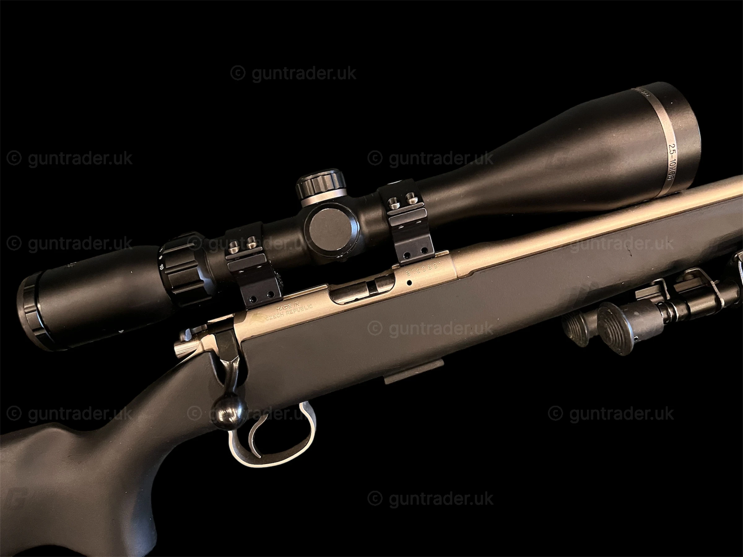 CZ 452 Style Synthetic Stainless, fitted with Hawke Endurance 2.5-10 x 56 scope and mounts plus Sak sound moderator, bi pod and sling.