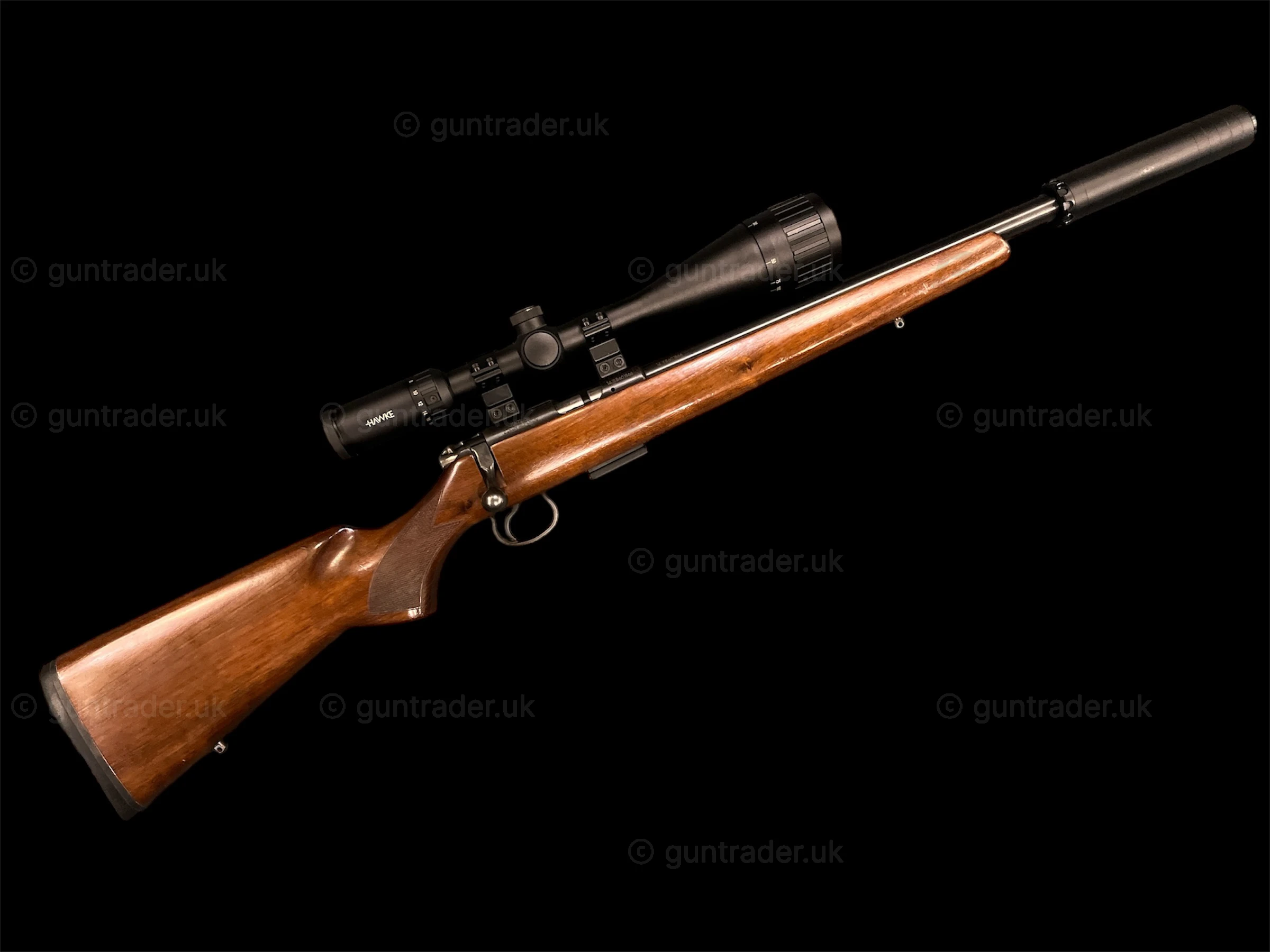 Fitted with Hawk 6-24×50 scope and Wildcat Panther .17 Sound Moderator