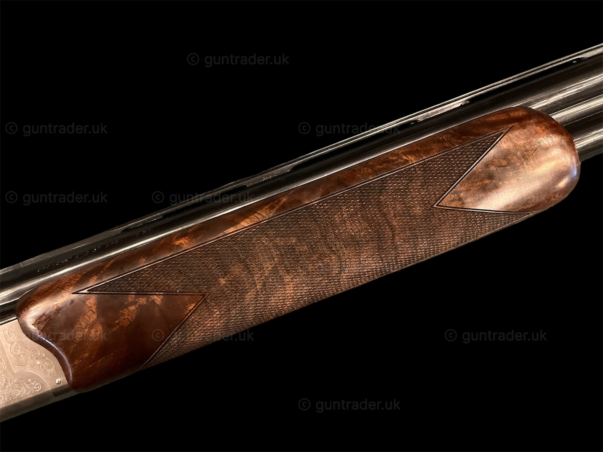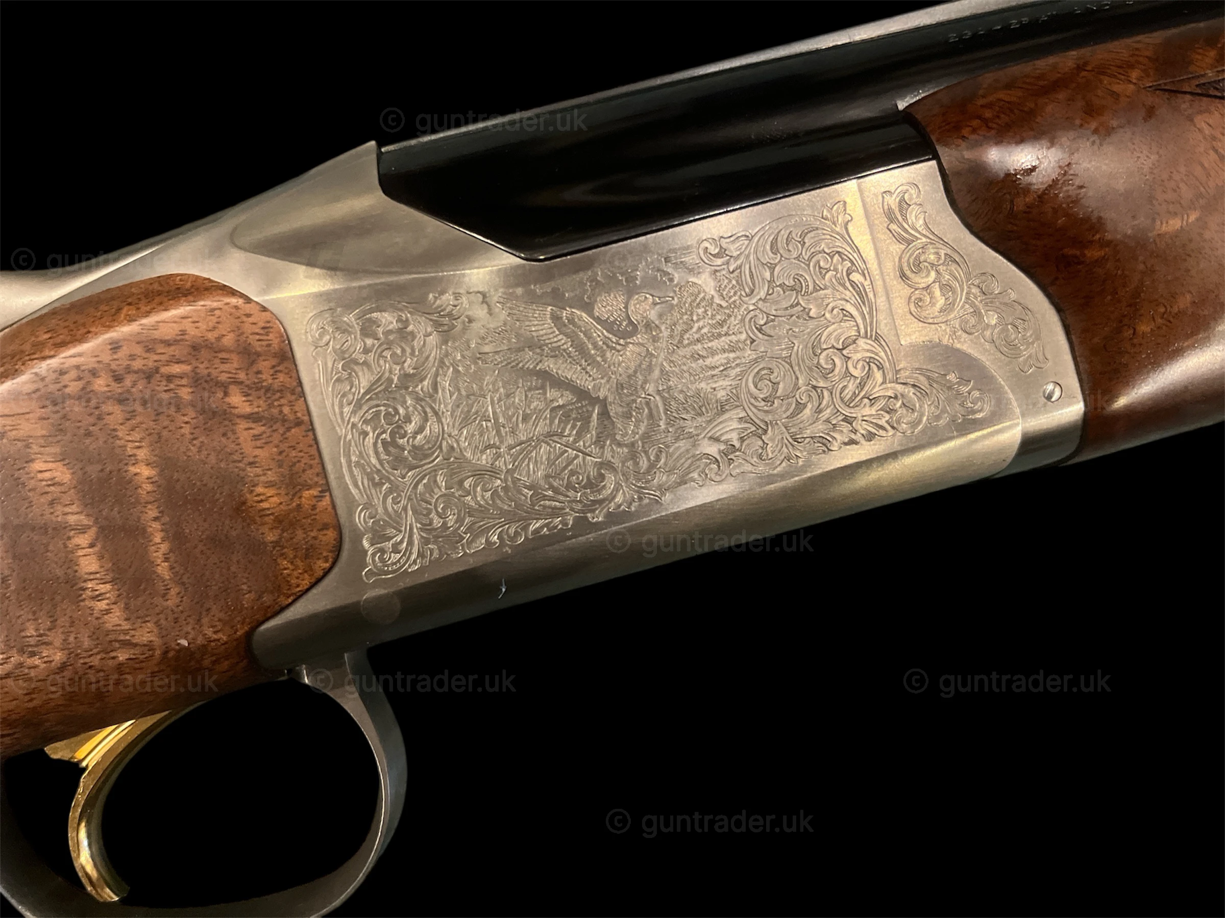 The 825 Game is fitted with figured grade 5 American Walnut stock and forend. Game scene engraved action. The top lever and safety catch have a more ergonomically shape and the forend is easier to remove due to an improved latch. A new improved mechanical trigger guarentees the use of extremely light loads. Fitted with an Inflex II recoil pad which provides exceptional recoil absorption.