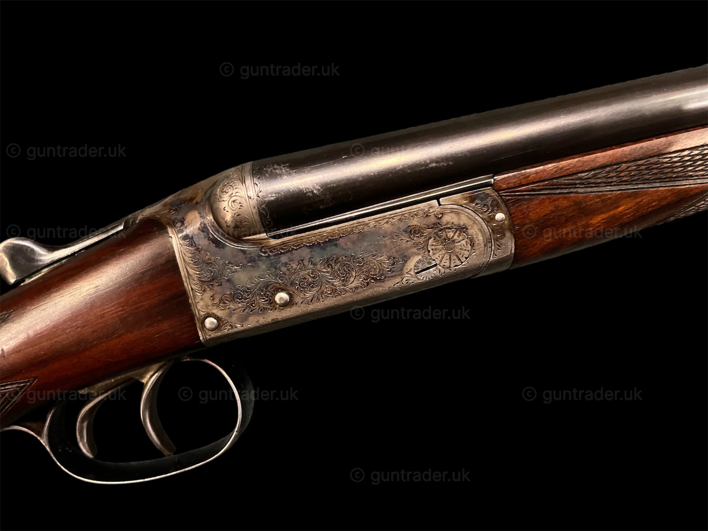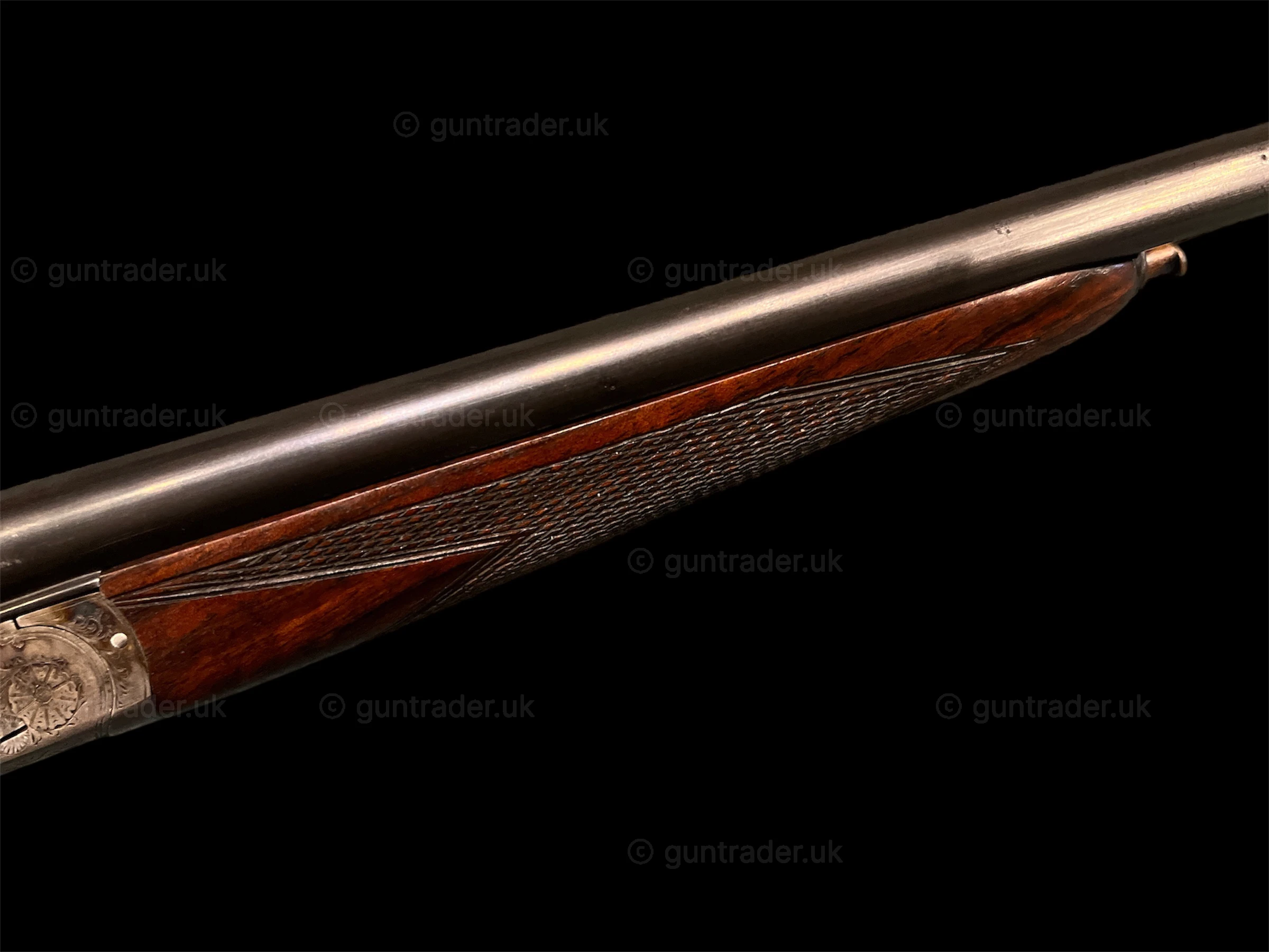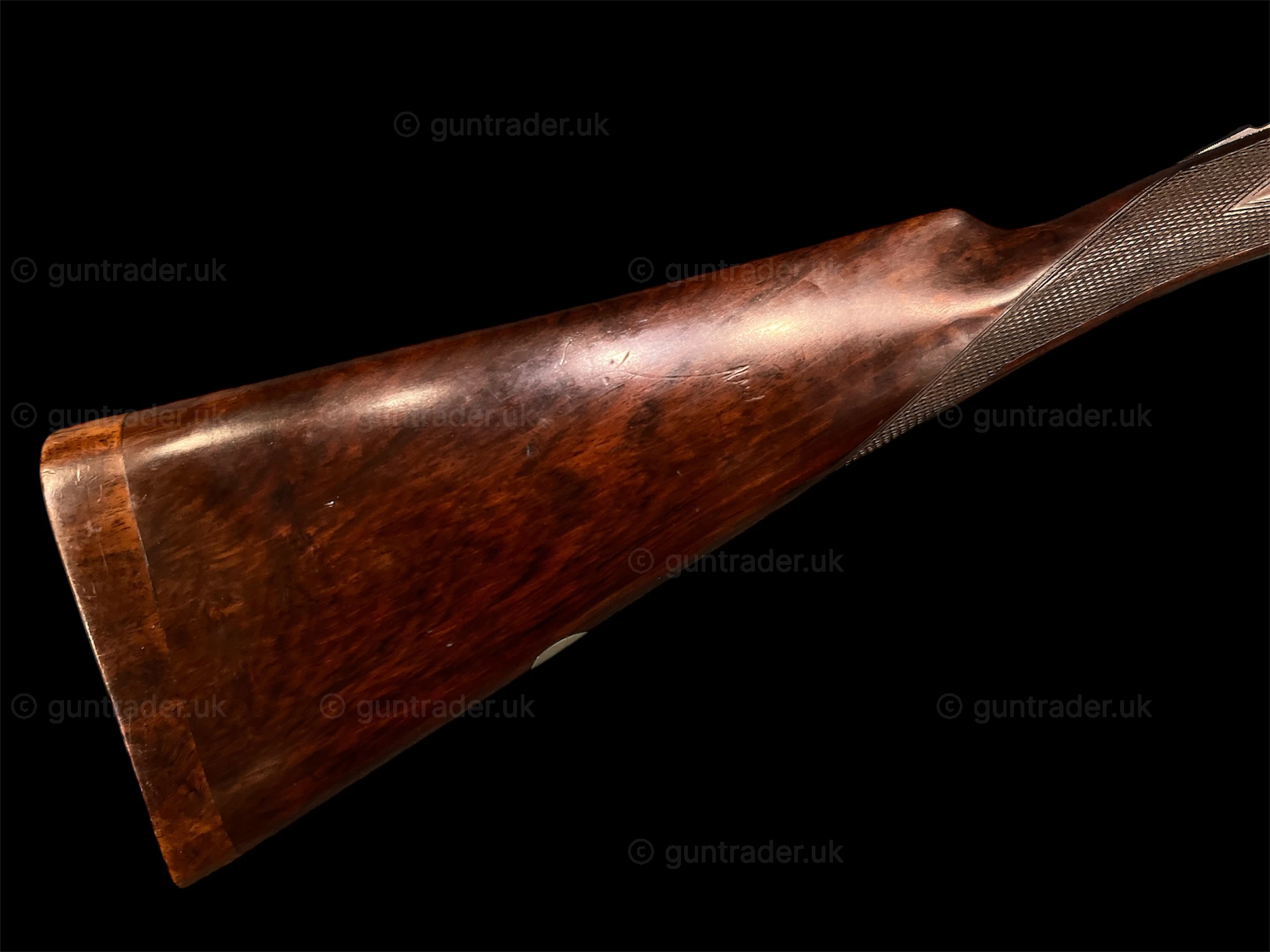 H.Clarke and Sons of Leicester, Boxlock Ejector with 15″ straight hand stock inclding 1″ wooden extension. Action retaining most of its original colour.This gun has recently been proofed for 3″ chambers.